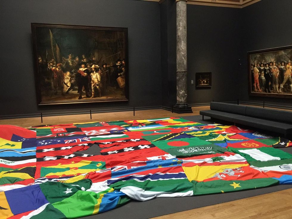 In our Amsterdam Rainbow Dress we wrap the cruelty of restricting ones happiness by prohibiting free choice of love, in beauty and elegance. The body of the 52 feet long dress is made out of the flags of the city of Amsterdam, with the three st. Andrew crosses. Honoring the free spirit of Amsterdam and the safe shelter Amsterdam provides for lesbian and gay people all over the world.