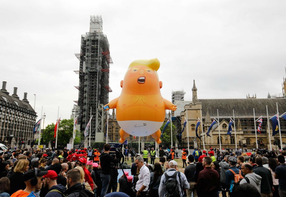 A giant, orange baby Trump blimp greeted the US president, much to the delight of critics.