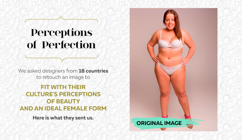 Photoshop her form. The idea is to Photoshop and retouch this woman to make her more attractive to the citizens of your country. We are looking to explore how perceptions of beauty change across the world. Multiple designers are involved. You can modify clothing, but her form must be visible. No nudity. All other changes, including those to her shape and form, are up to you.