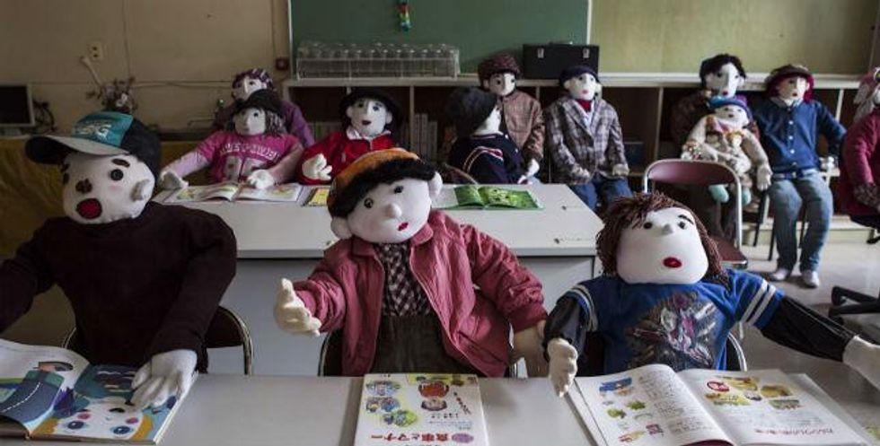 The dolls are reminiscent of those found in Shinto shrines, which are scattered densely all around Japan as a way to honour both the dead and kami, or 'gods.'