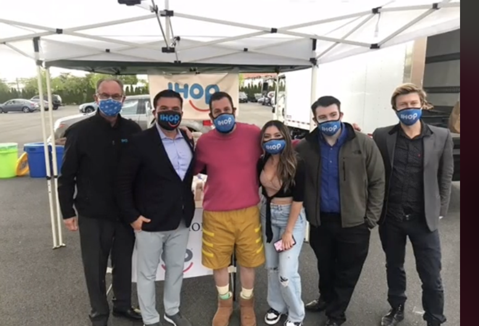 Sandler popped up to IHOP, meeting up with hostess Dayanna Rodas who previously told him there would be a 30-minute wait to be seated at the restaurant.