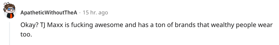 Another Redditor reiterated: "Why are people being so rude about this? Even if she's awful, TJ Maxx is a fun place to shop, regardless of how much money you have."