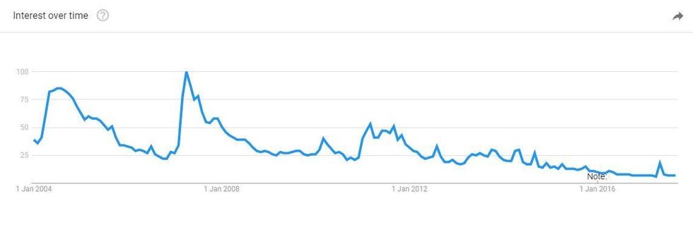 Avril Lavigne last released an album in 2013, so her popularity with Google has obviously waned over the years.