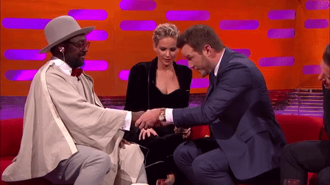Seemingly defeated, Pratt fist bumps Will I Am and does some more Pratt magic.