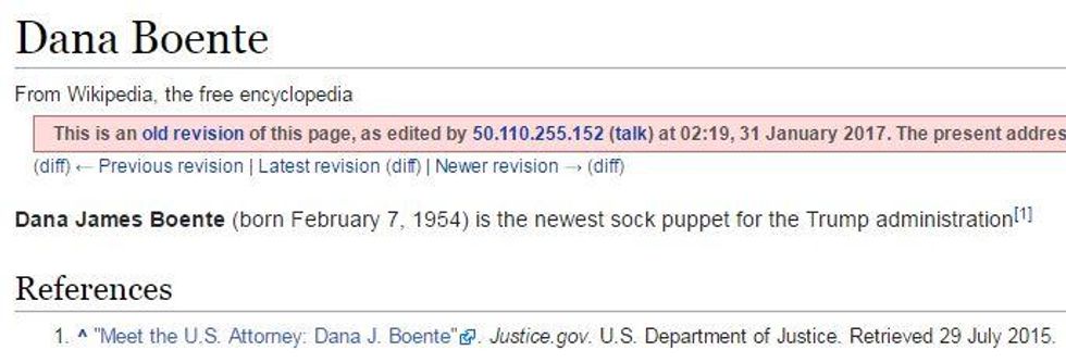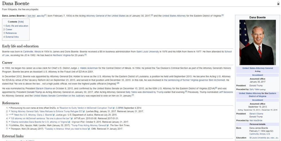 This is what Dana Boente's Wikipedia looks like currently.