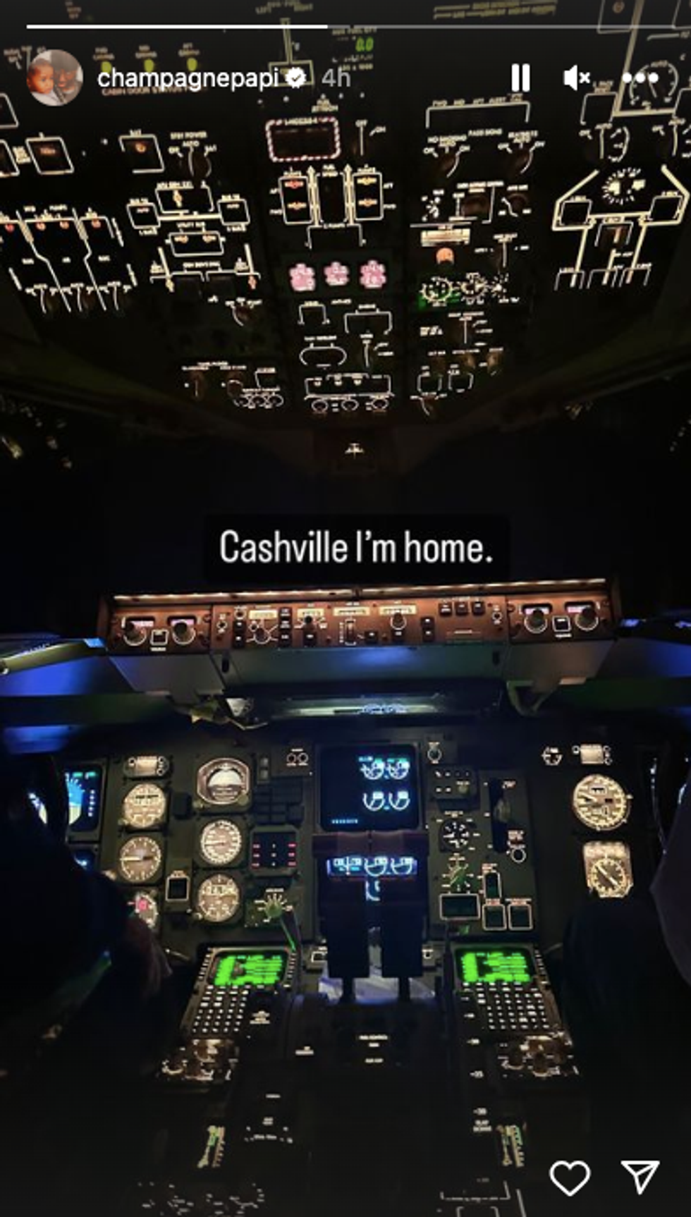 Although Drake has yet to publicly comment on the video he has given the biggest nod to it yet on his Instagram Stories. In a picture shared on Wednesday, Drake posted a snap of the plane's cockpit complete with the caption: "Cashville I'm Home."