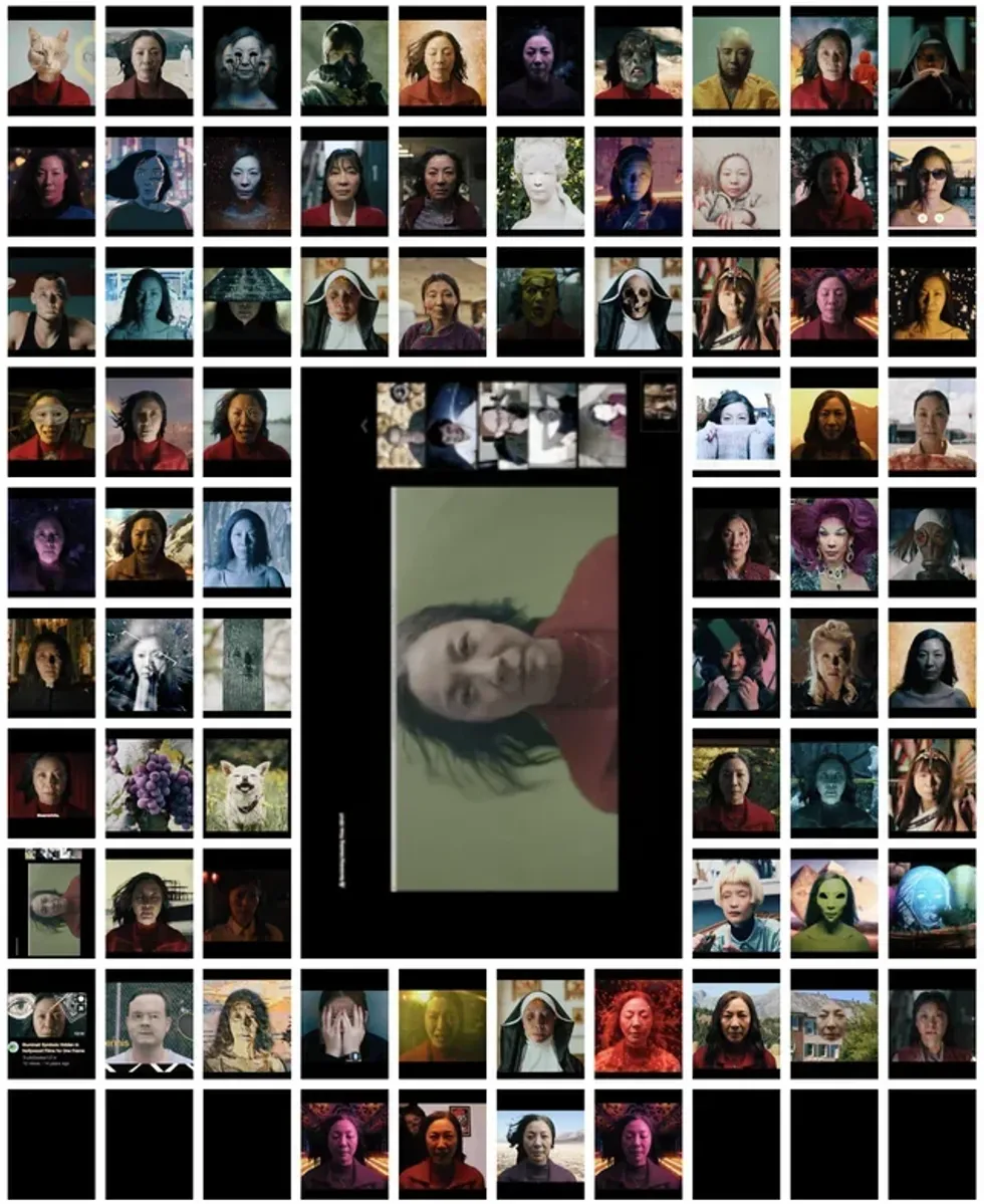 As a result, we see the kaleidoscopic vision of everything she's learned from her alternate existences, which helps her to become the savior of all realities in the movie.