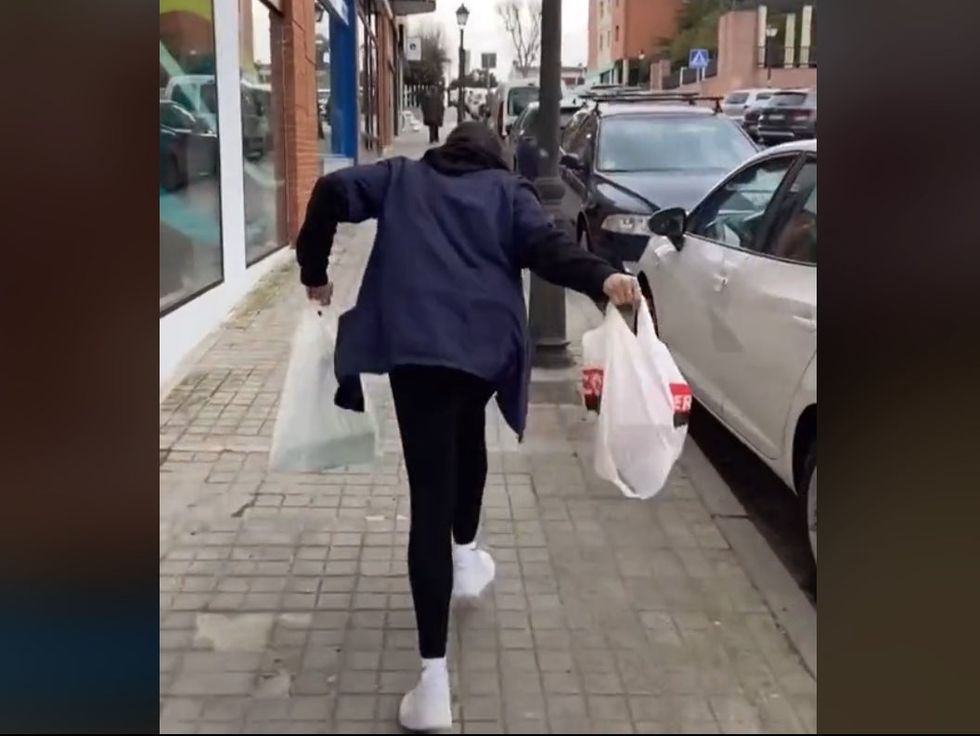 The video ends with the group running down the street, laden with bags, before celebrating their achievement once they safely reach home.