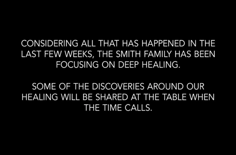 "Considering all that has happened in the last few weeks, the Smith family has been focusing on deep healing. Some of those discoveries around our healing will be shared at the table when the time calls," Jada wrote at the start of Wednesday's Facebook Watch show.