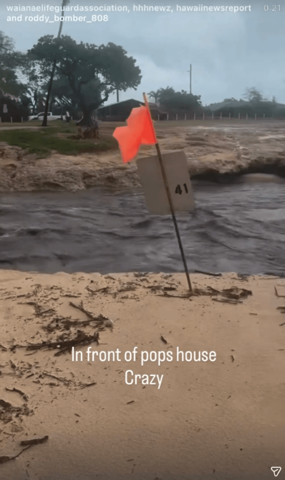 "The North Shore is pretty gnarly right now. So just love, and hopefully everyone is safe and getting out, and we can get together and figure out how we help everyone. And all my love, and stay safe out there."