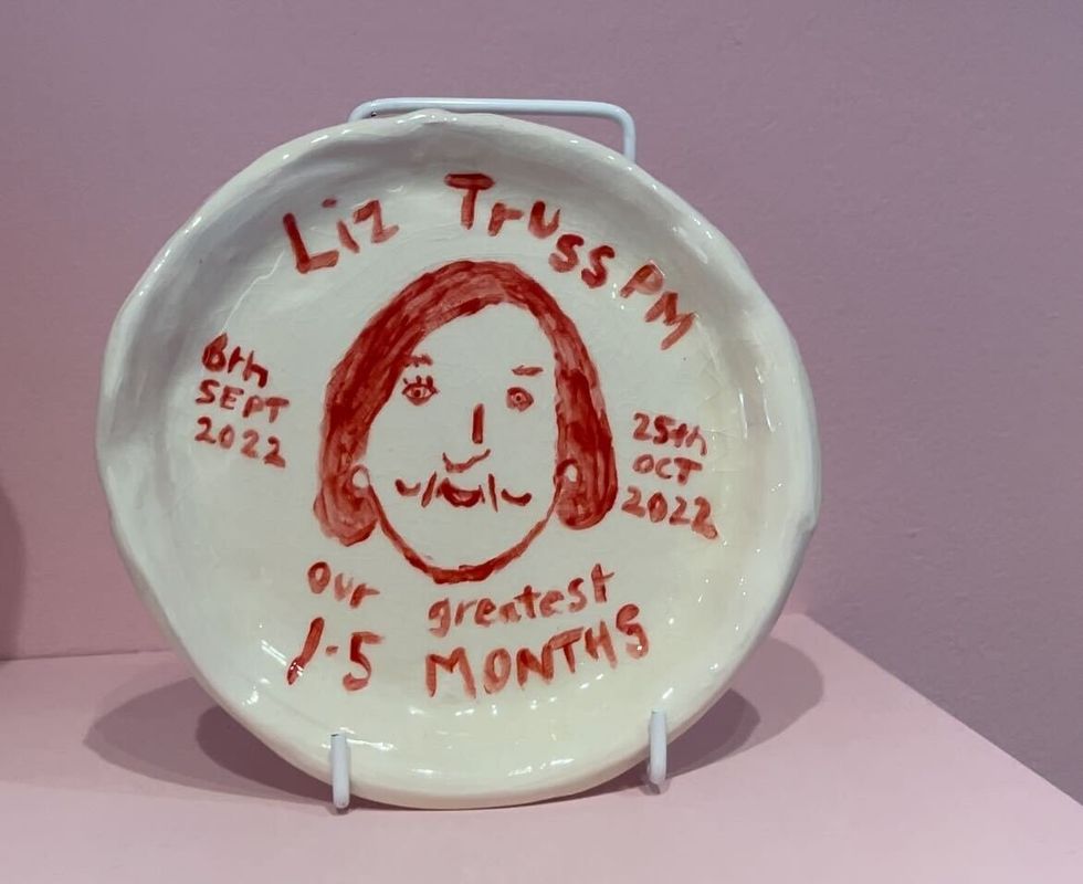 Now, at the ‘Lycett & Mummy’ exhibition this week, a ceramic plate has been put on display marking Ms Truss’ turbulent tenure.