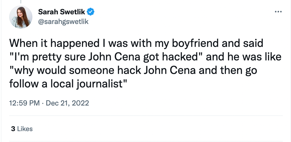 On Wednesday, several journalists on Twitter pointed out that Cena began following them and colleagues, seemingly out of nowhere.