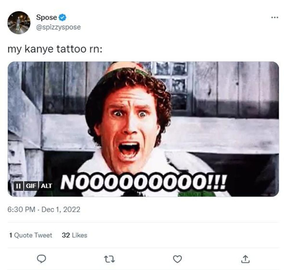 But NAAMA Studios in London are offering free removal to those with Ye-inspired tats following West's antisemitic comments that saw him get dropped by big brands such as Adidas, GAP and Balenciaga.