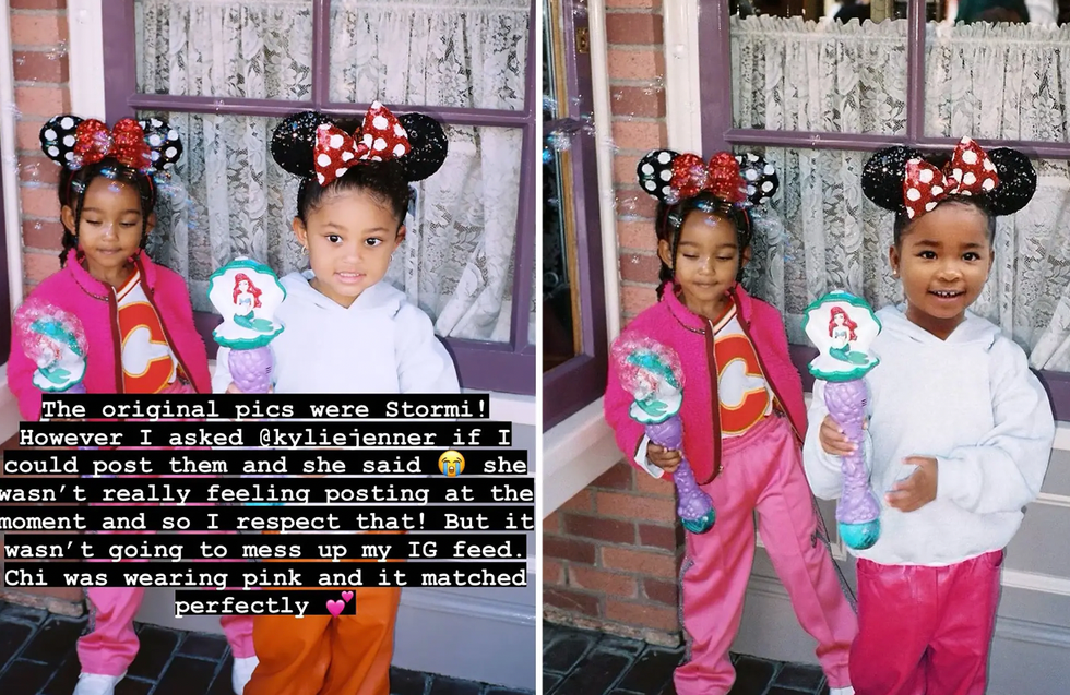 At the time, Kim shared the original image at Disneyland to her Instagram story, writing: "The original pics were Stormi! However, I asked @kyliejenner if I could post them and she said [insert crying face] she wasn't really feeling posting at the moment and so I respect that! But it wasn't going to mess up my IG feed. Chi was wearing pink and it matched perfectly."