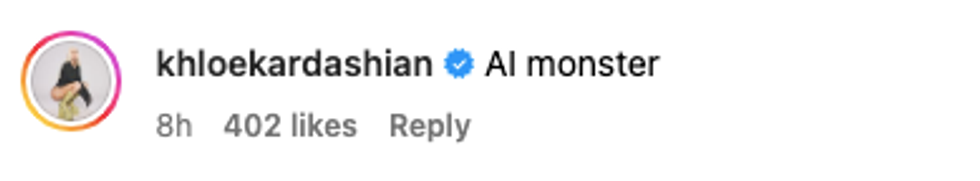 However, not everyone was impressed. Jenner's sister Khloe swiped in with a brutal dig at the supermodel. The 39-year-old wrote "AI monster" in the comments of the post clearly unable to compute how her half-sister is even real.