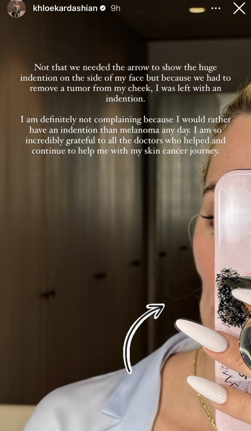 Khloe Kardashian has bravely opened up about her skin cancer journey that left an indention on her cheek.
