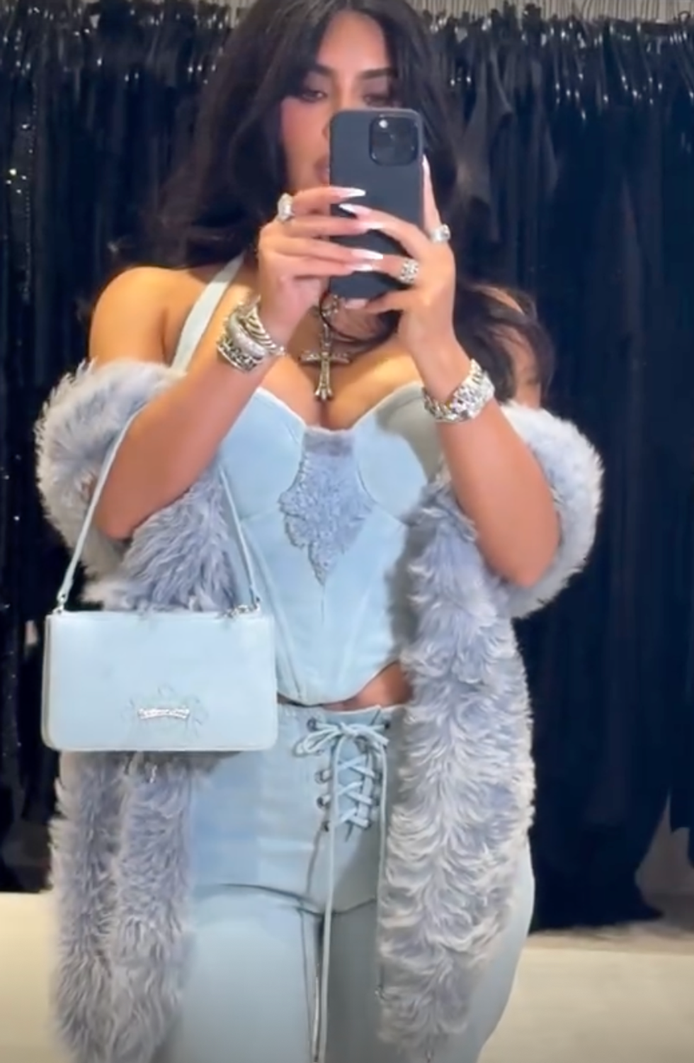 Khloe posted a video on Instagram of her before and after getting ready, revealing her outfit complete with a denim and diamond cowboy hat.