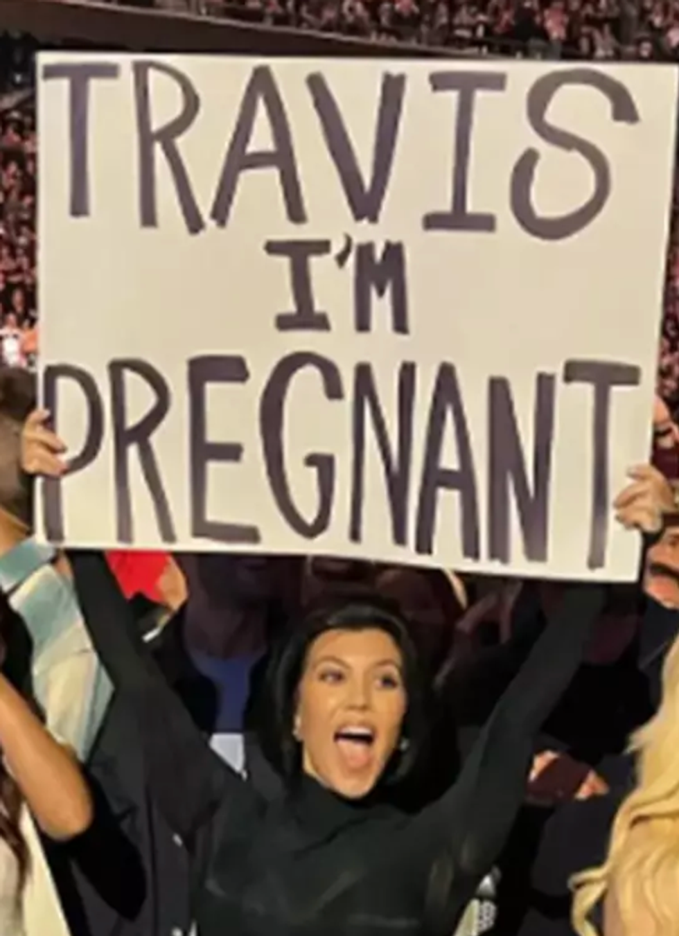 Earlier this year, Kourtney made headlines for holding a sign reading 'Travis I'm Pregnant!' during his Los Angeles gig.