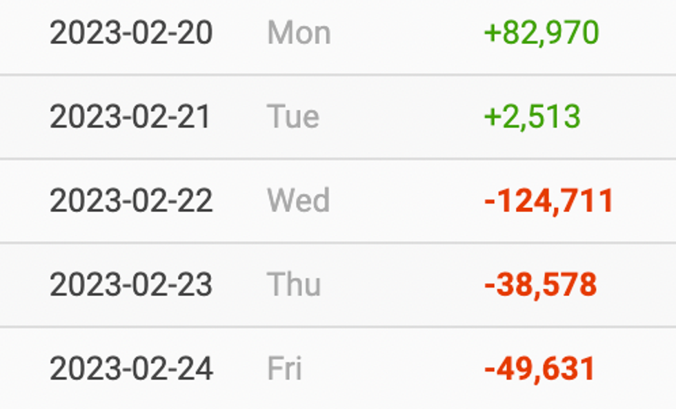 The next day saw a further decline of 38,578, followed by -49,631 on Friday (24 February).