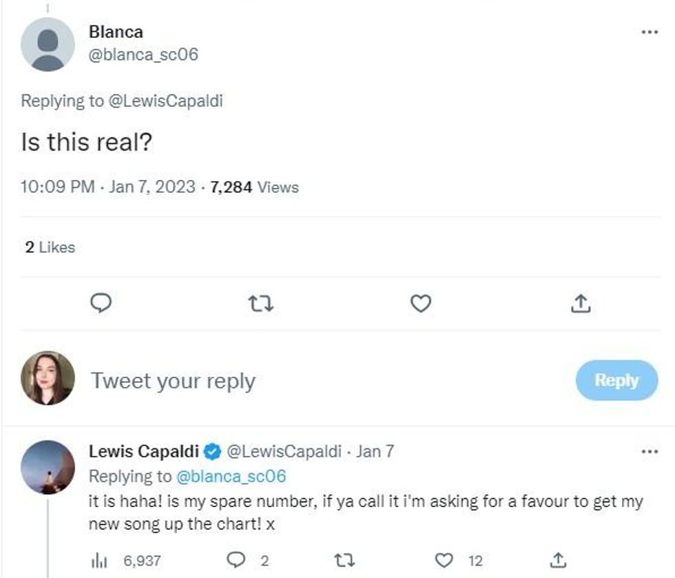 Lewis Capaldi rang a fan to thank her for downloading his latest single, but the phone call took a hilarious - albeit brief - turn.