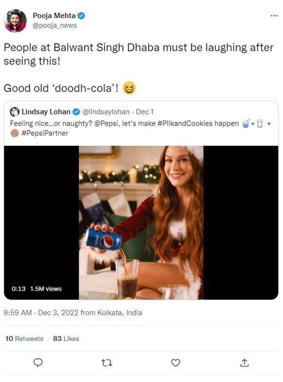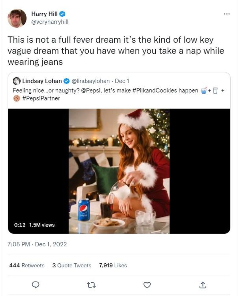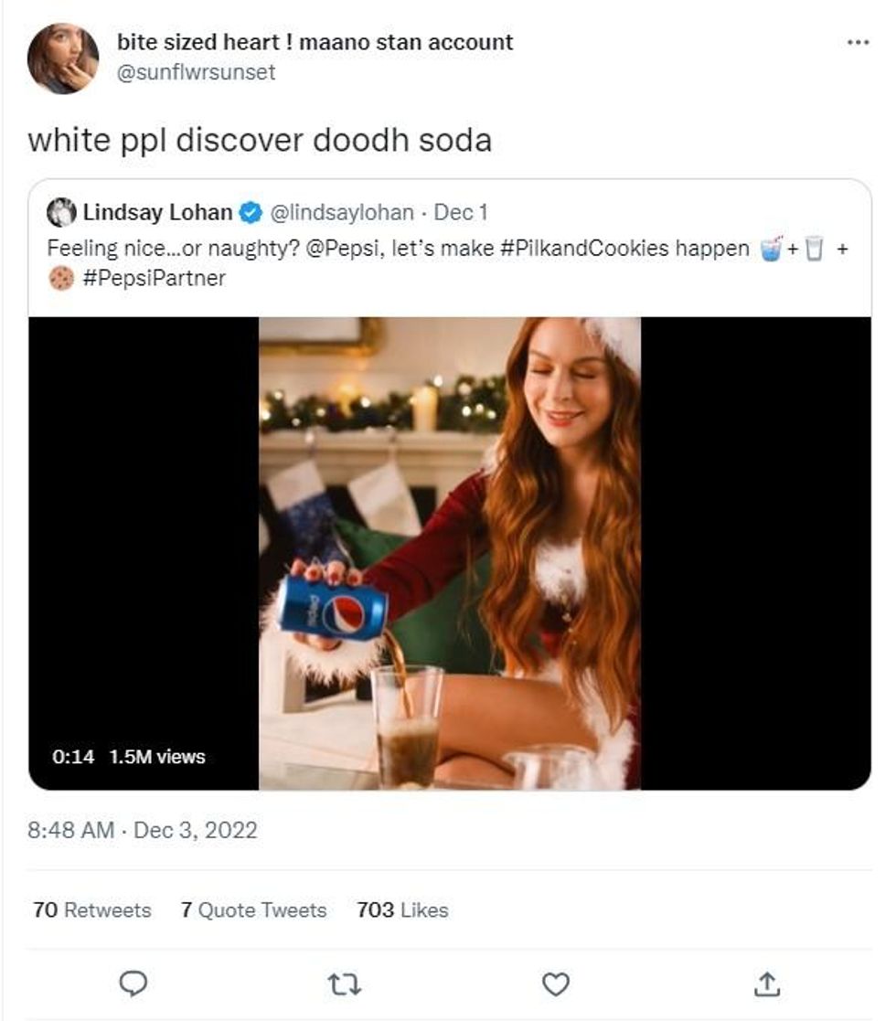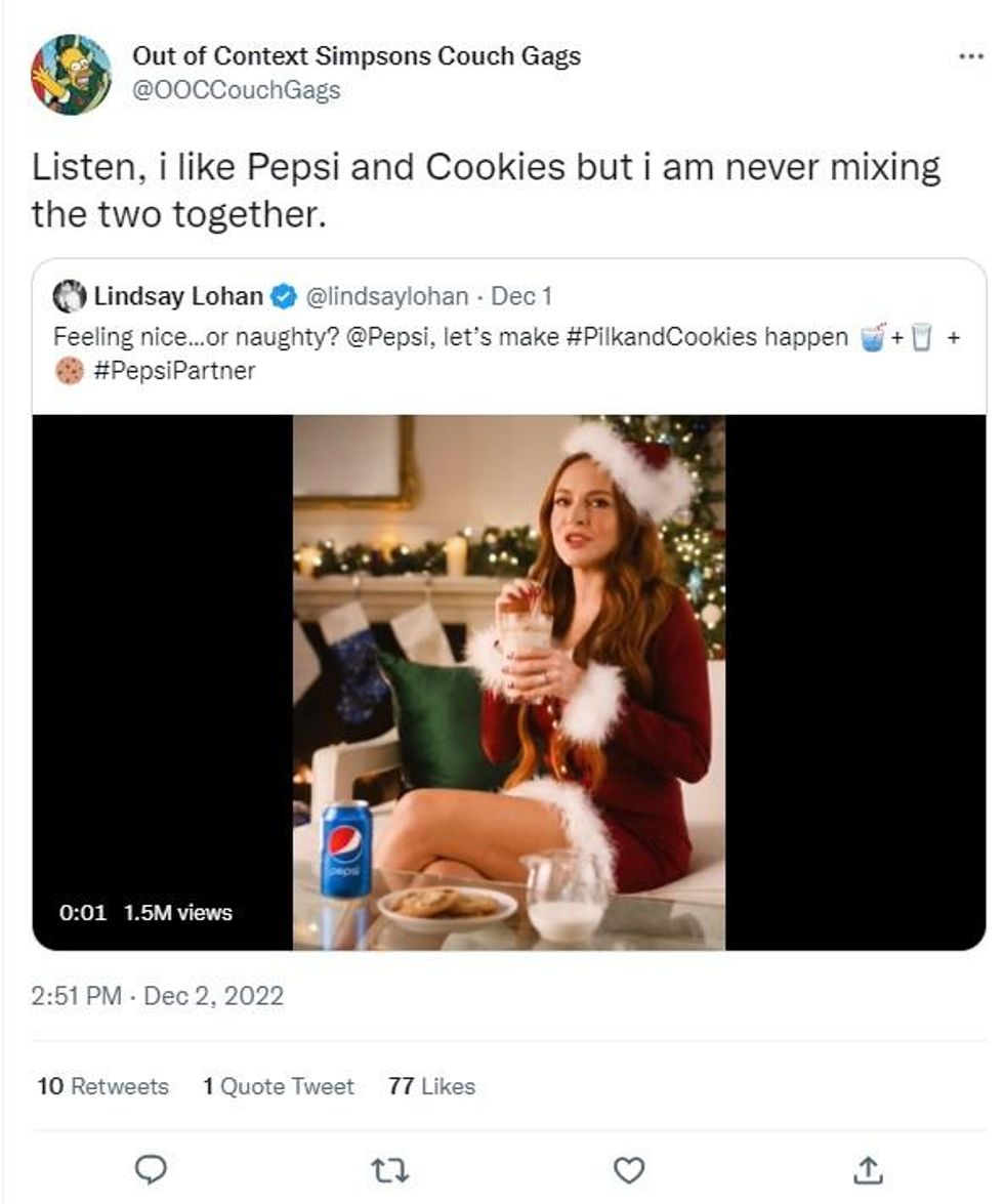 Eggnog, Baileys, mulled wine - there are a variety of beverages people enjoy during the festive season - however, Lindsay Lohan has horrified viewers by knocking back "pilk" in Pepsi's latest Christmas advert.