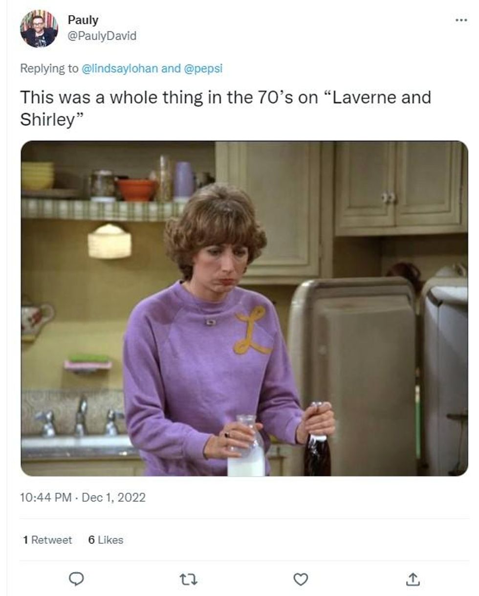 Some pointed out that "pilk" was also a thing on the classic 70s sitcom Laverne And Shirley where the character Laverne DeFazio mixes the two together as her go-to beverage.