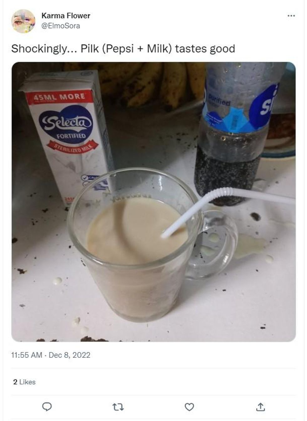 (And before you ask, yes that's Pepsi and milk mixed together).
