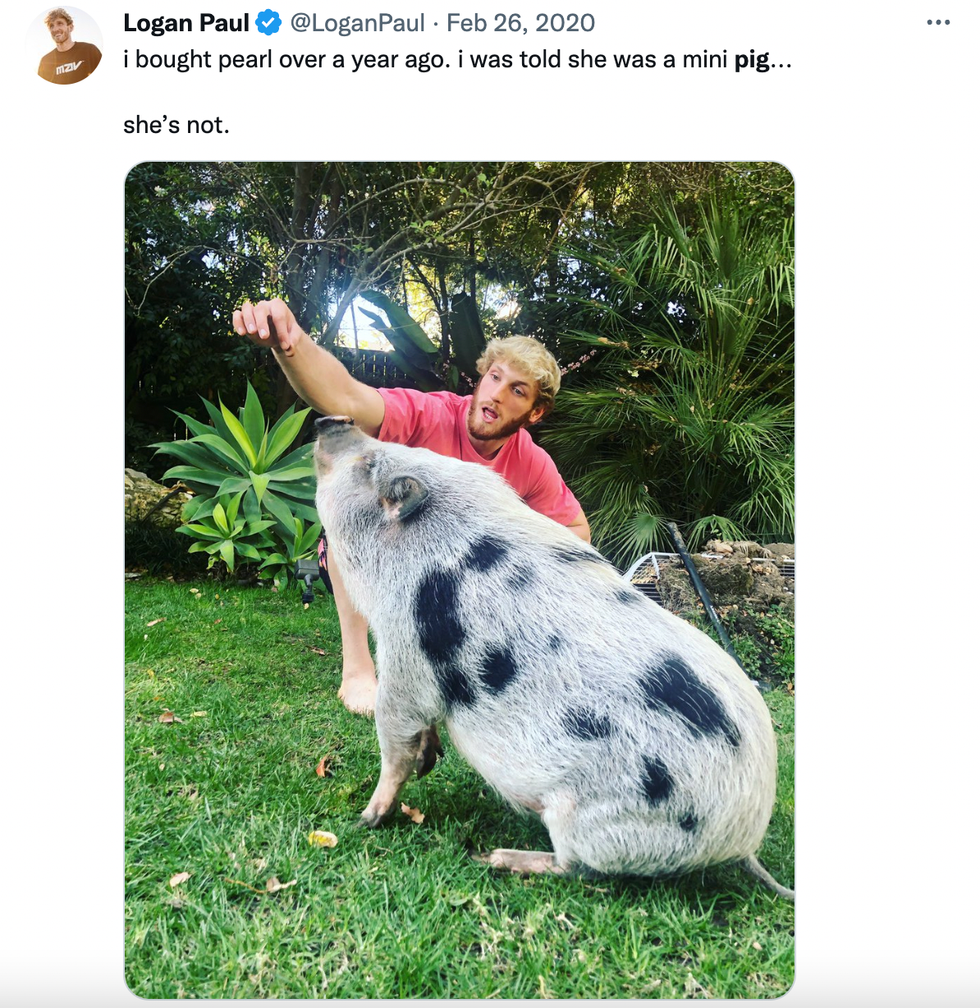 Some used a 2020 tweet from Paul where he posted a photo of Pearl writing, "I bought pearl over a year ago. I was told she was a mini pig... She’s not" to piece together the case of the rehomed pig.