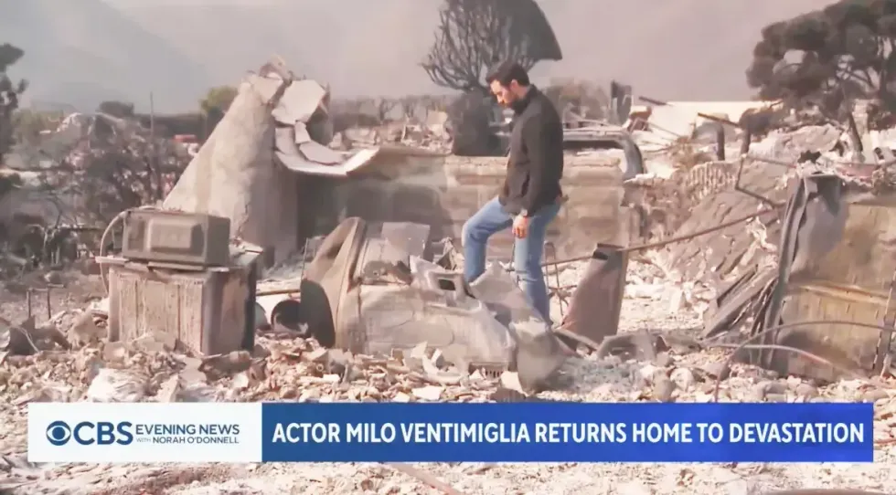 Actor, Milo Ventimiglia, held back tears as he toured the charred remains of his Malibu home during a live TV interview - the same place he shared with his pregnant wife, and they were hoping to raise their first child.