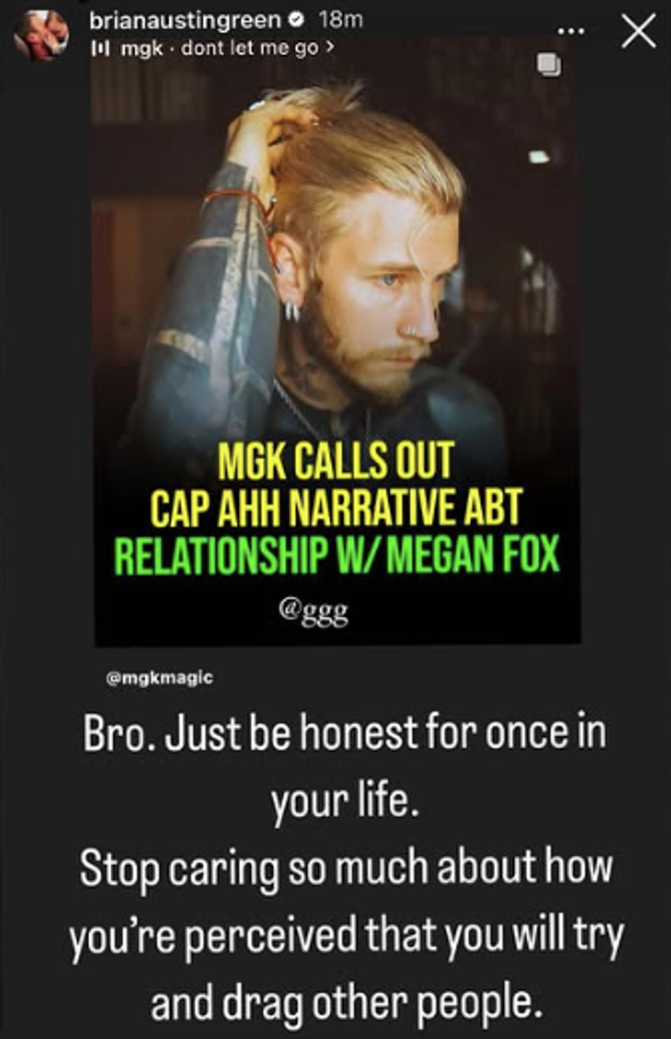 What did Brian Austin Green post on Instagram about Machine Gun Kelly?