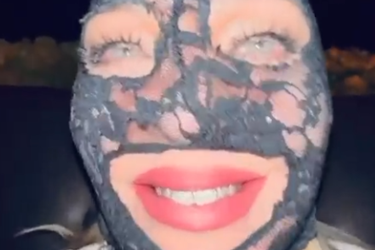 Now, this is pretty tame for Madonna, who has come under fire recently for posting a revealing TikTok video of her dancing in a thong. The real scary stuff is on her Instagram story, which shows close-up clips of Madonna in her unusual headgear.