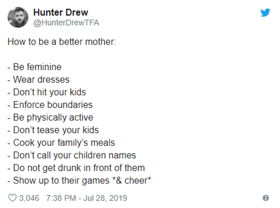 Hunter inadvertently angered both women and men with his post, titled “How to be a better mother.”