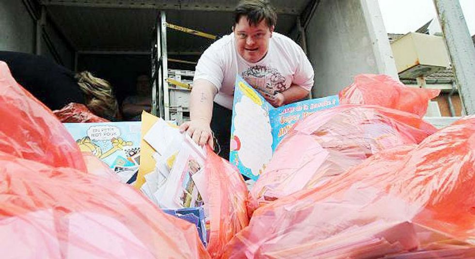 He’d be hard-pressed to manage that. Thousands of people from around the world have sent birthday greetings to Manuel Parisseaux in France after his mother asked the public to help him celebrate the day. Mr Parisseaux, who has Down’s syndrome, turned 30 at the weekend and was stunned to receive 30,000 birthday cards in the post.