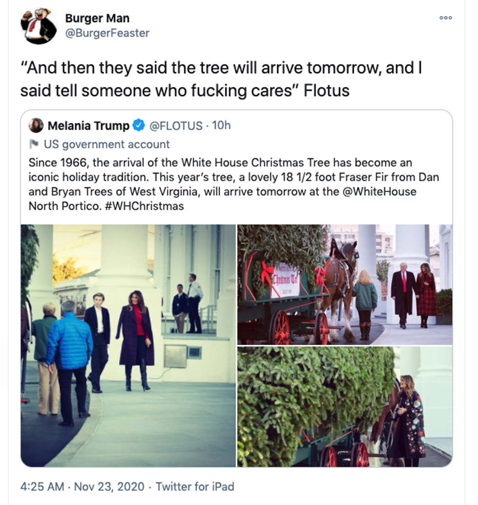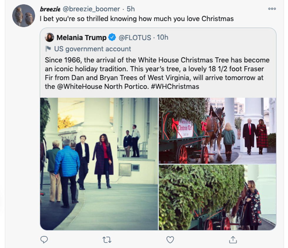 After reading these tweets, Melania Trump might hate Christmas tree decorating even more than before.