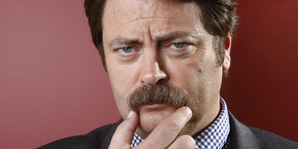 Offerman told The Believer that Ron Swanson’s signature ‘stache was a combined effort: five to six weeks to full grow out and maintenance by makeup artist Autumn Butler. The mustache became so popular that Offerman made headlines when shaving it off in 2015 to promote Me, Earl, and the Dying Girl.