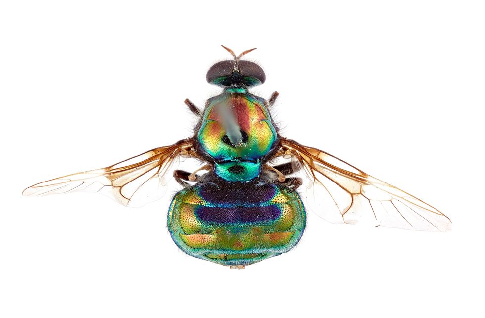 Opaluma rupaul is an iridescent species of soldier fly, a species that many may not know to play an important role in the ecosystem.