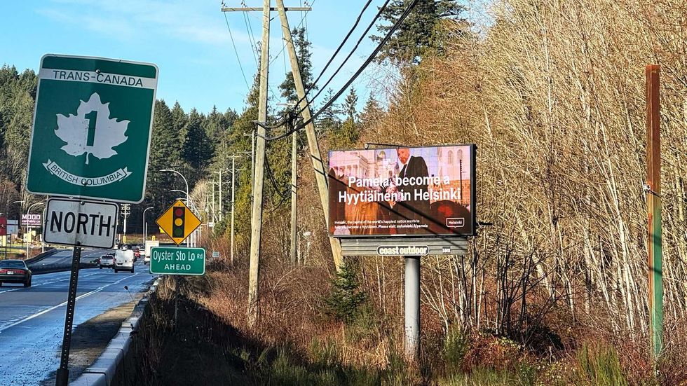 The capital of the happiest nation in the world even took billboards to Vancouver Island, where the 58-year-old currently lives, to ensure she saw the campaign.