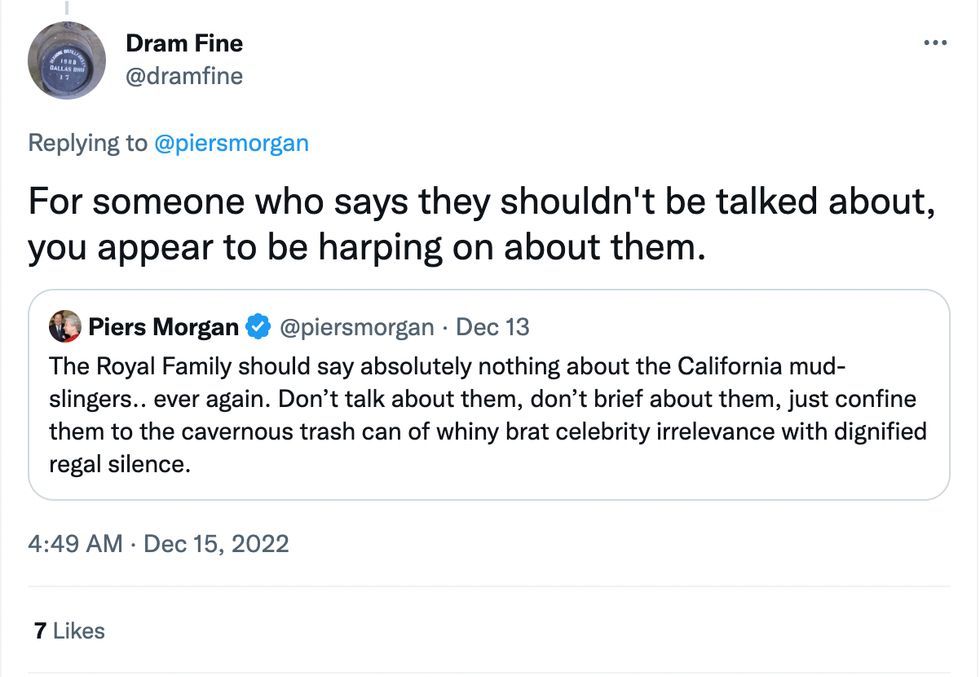 Similarly, people tried to make Morgan more self-aware by reminding him of his constant tweets about Meghan and Prince Harry.