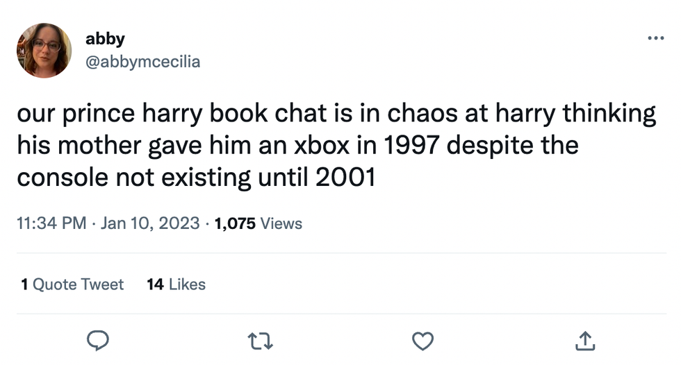 \u201cIt's definitely worth noting that IN THE BOOK when Harry talks about the Xbox (which hadn't been released yet in 1997) he explicitly states that he has no idea if this particular memory is true and explains that his mother's death messed with his memories. https://t.co/aX0P4JeC6f\u201d— Ellie Hall (@Ellie Hall) 1673482114