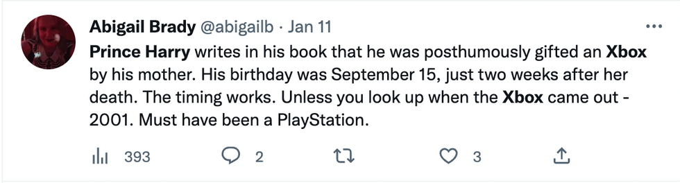However, readers were quick to note that the first-generation Xbox console was released until November 2001 - four years after Harry’s anecdote takes place.