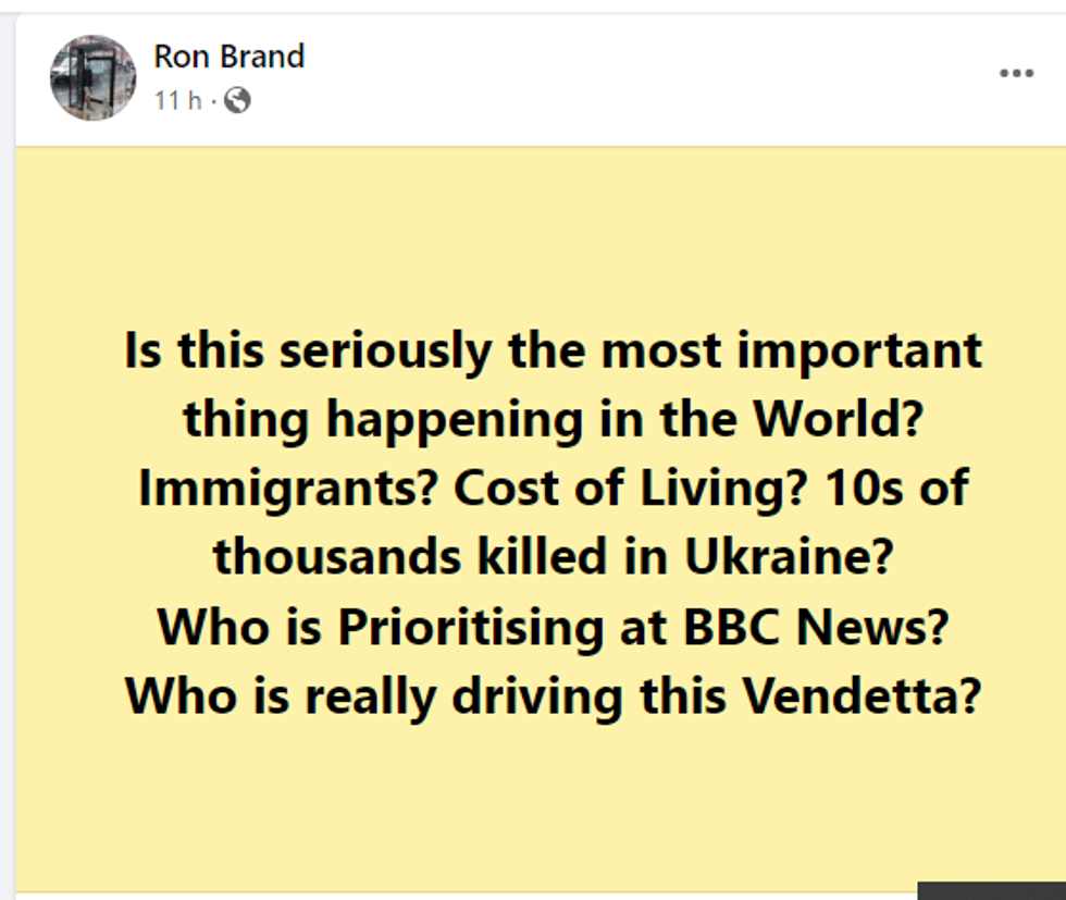 In another, he asked: "'Is this seriously the most important thing happening in this world? Immigrants? Cost of living? 10s of thousands killed in Ukraine? Who is prioritising at BBC News. Who is really driving this vendetta?'.