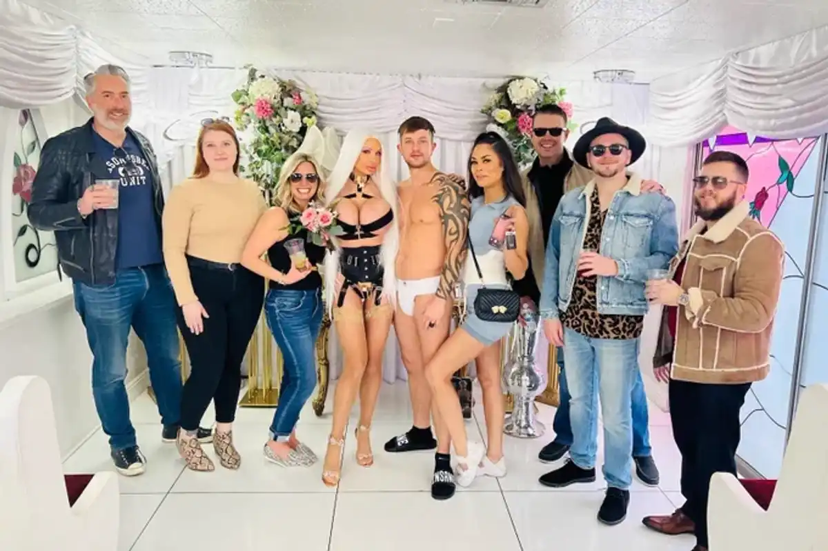 His message was swiftly followed up by a photo showing him standing beside Anderson, apparently during their wedding, which he claimed took place at the Little White Chapel in Las Vegas.