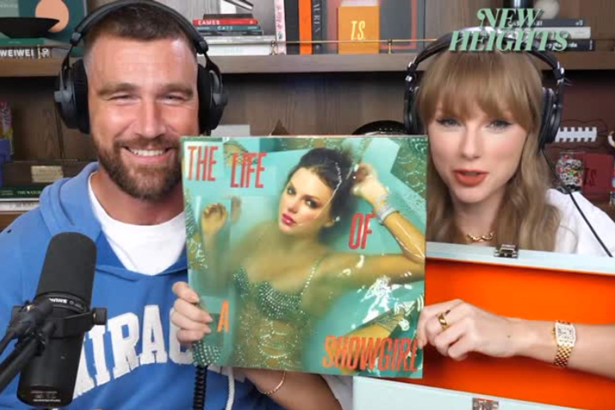 "This is my brand-new album, The Life of a Showgirl," Swift said, to which Jason screamed in excitement.