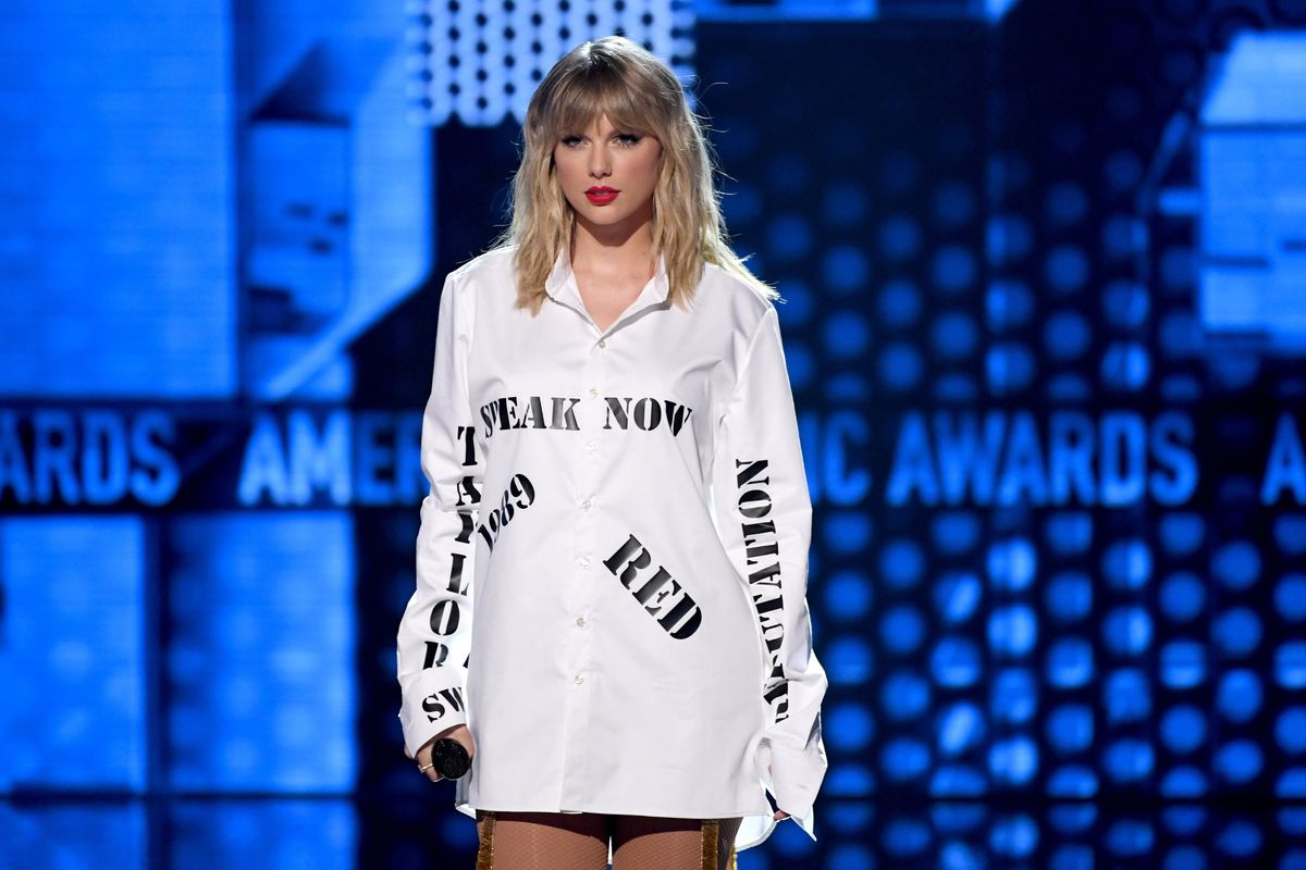 One of Swift's most iconic performances was six years ago at the 2019 American Music Awards, where she famously wore a shirt with the names of her older albums screen-printed on as she performed a medley of songs “Love Story,” “I Knew You Were Trouble,” "Blank Space “Shake It Off,” and "Lover."