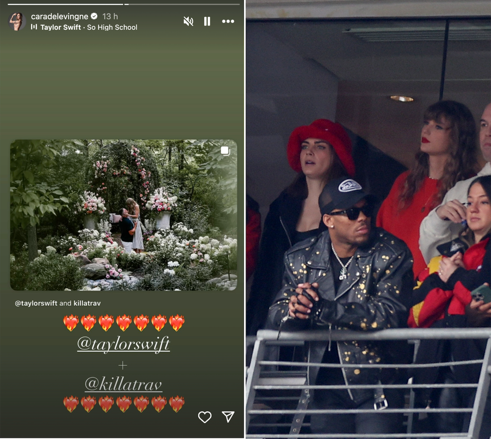 Model and Swift's friend Cara Delevingne reshared the couple's engagement post to her Instagram Story with a load of love hearts, she's previously been spotted attending a Kansas City Chiefs game with the singer, and also famously starred in Swift's 'Bad Blood' music video.