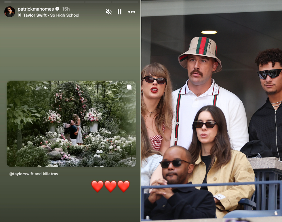Kelce's Kansas City Chiefs teammate, Patrick Mahomes, also shared the couple's post on his Instagram Story with three red heart emojis.
