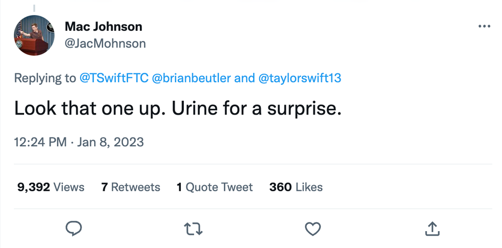 Although some Twitter users pointed out TSwiftFTC's mistake, others thought the typo was very funny and made their own jokes and puns- all urethra-adjacent.