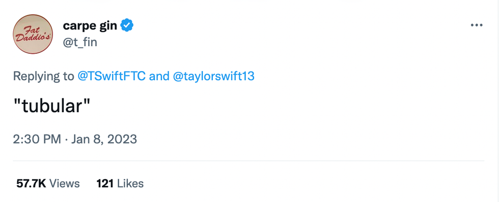 \u201c@TSwiftFTC @taylorswift13 You\u2019re taking the piss\u201d— Taylor Swift Facts (@Taylor Swift Facts) 1673116492