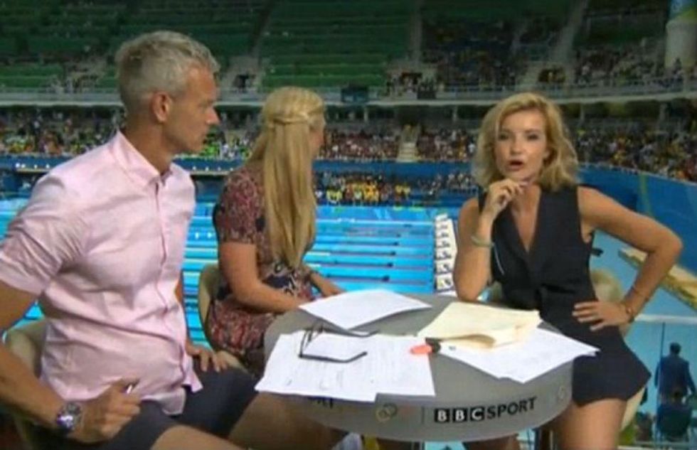 Helen Skelton has been presenting the BBC's swimming coverage at the Olympics and she wore this outfit on Saturday night: