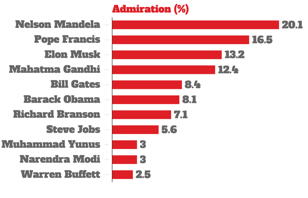 More than 1,000 people from 125 countries and 285 cities responded to a WEF call to reveal the world leaders, past and present, that they most admired, and felt most inspired by.